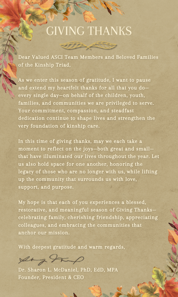 Blog Giving Thanks: A Message from Dr. Sharon L. McDaniel November 26, 2025 The opinions expressed are solely those of the author and do not necessarily reflect the views of A Second Chance, Inc. Previous Leave a Reply Cancel replyYour email address will not be published. Required fields are marked *Comment * Name * Email * Website Save my name, email, and website in this browser for the next time I comment. Δ